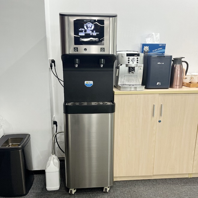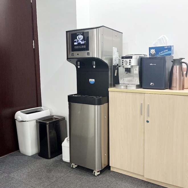 恒峰国际商用直饮机ME205B采用先进的RO反渗透过滤技术,能有效的去除水中泥沙、杂质、异味等有害物质,还有冷热温控功能,满足员工泡咖啡与0泡果茶的需求。